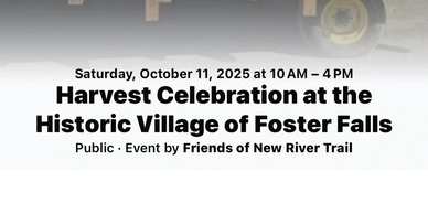 Free event to celebrate the harvest season at the historic village of Foster Falls. The Inn at Foster Falls will have a special lunch menu available for purchase. CCLC will be there.